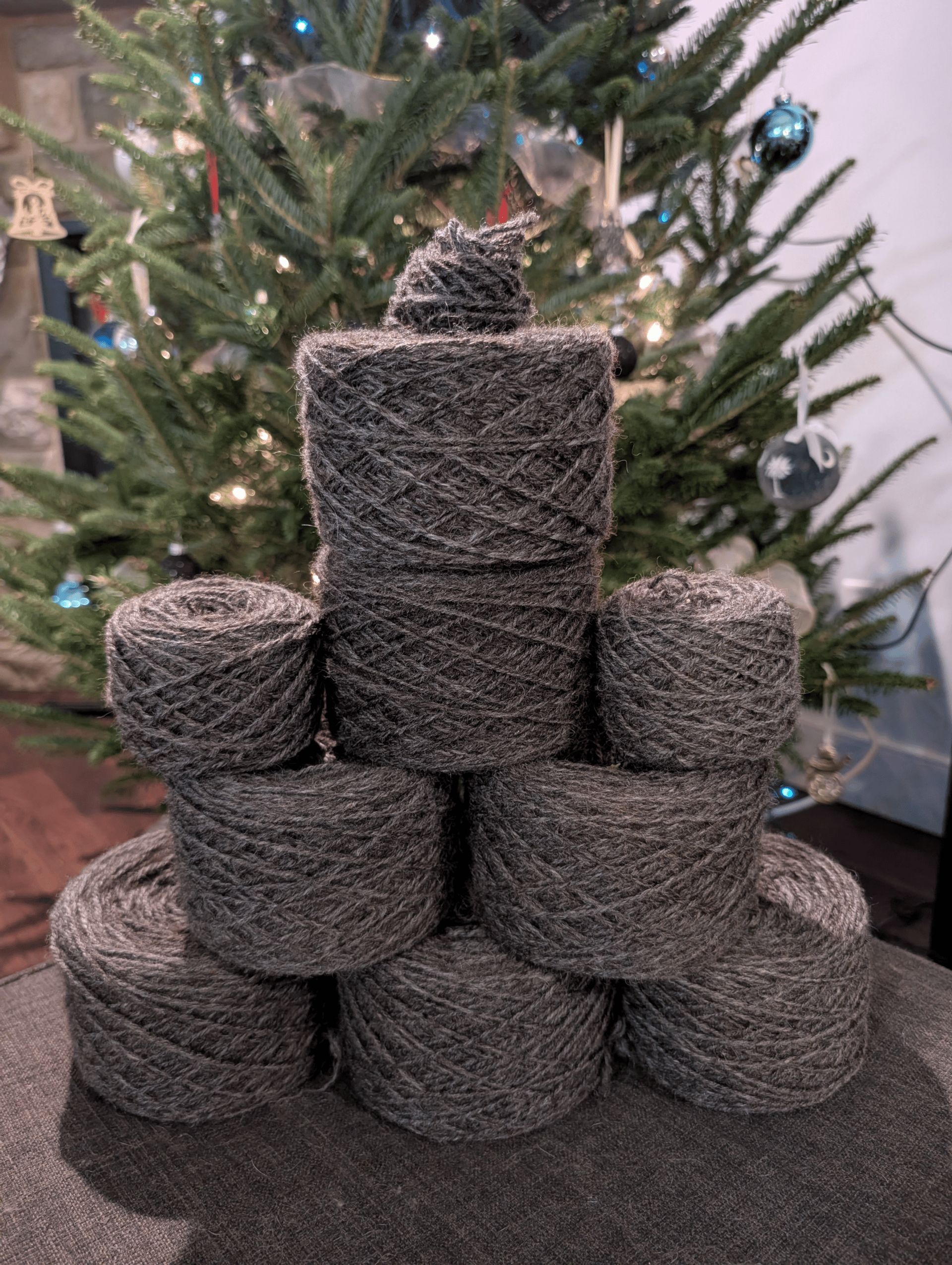 This is definitively the largest spinning project I’ve ever done. This was something like three pounts of wool (a literal garbage bag full—one whole Gotland cross fleece) before I had it cleaned, carded, and blended with some gray merino wool at a local fiber mill. Theoretically, this is going to become a cabled fisherman’s sweater, but I need a wee break from the gray, first.